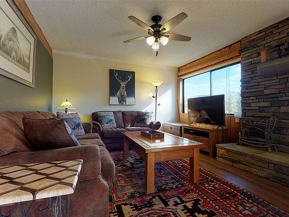 Enjoy a mountain cabin theme throughout with stunning views from every window plus your own garage parking. This spacious, upgraded & bright, corner 2bd/2ba condo has it all! Check the current mountain conditions from your sunny south facing balcony or just take in the stunning mountain and tree views-you will feel like you are staying in a tree house! Warm up next to the romantic gas log fireplace and watch a movie. With 3 separate beds and a pull out couch the condo can sleep 6 comfortably. Located at the base of Canyon Lodge and adjacent to the "ski back" trail to the Village. Ski right to your front door or all the way down to the Village for some lunch. The complex offers a fun game room with a pool table and video games. The hot tub is a short walk from the condo to relax after a long day of activities. The complex grounds are well maintained and the sunny pool area is the perfect place to get your mountain tan. If you like tennis, there are 3 tennis courts to play on! You can easily walk down to the Village in about 10 minutes or you can take the free Trolley to get all over town without a car year round. HOA includes cable and WIFI. Fireplace is to code. Check out the virtual tour to walk through the condo virtually or schedule a showing with your realtor today! All property viewings need to follow these rules of entry: