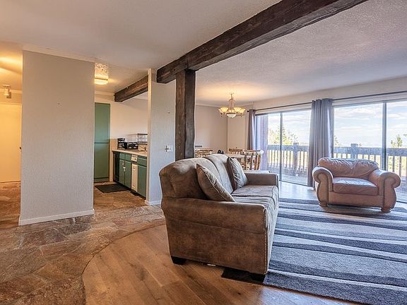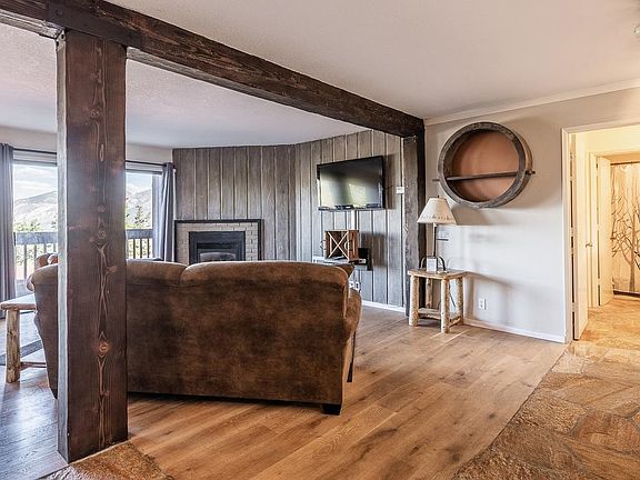 Stunning southeast facing views are the main attraction in this spacious open floor plan Mammoth Ski & Racquet condo. These are some of the best unobstructed views available in Mammoth Lakes and are even more amazing in person. Enjoy the view from the living room, dining room and kitchen or step through one of the two large sliders and enjoy the view from the long balcony. Inside the updated smoke oak hardwood floors and rustic quartz stone flooring throughout the condo are a beautiful foundation for the split-wing dual-master open concept layout. The living room with gas log fireplace, kitchen and dining room are in the center of this popular and rare floor plan with a master suite on each end. Each bedroom has its own new water heater and private bathroom. Located in the G building, the condo offers easy access to the pool, hot tub, common area laundry and fun game room. The grounds are well maintained and even include tennis courts. Adding to the perks of this condo is a one car garage and 4 private ski lockers. Mammoth Ski & Racquet is walking distance to Canyon Lodge and adjacent to the "Ski Back Trail" to The Village.