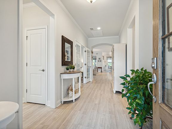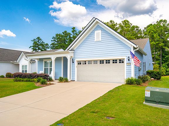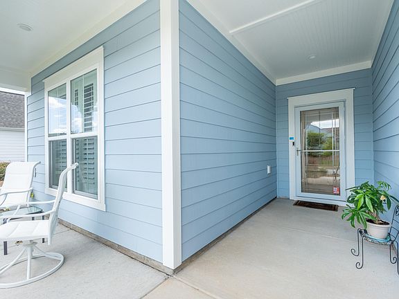 Experience comfort and resort style living in this beautifully appointed single story patio home, nestled within the award-winning Nexton-Del Webb community! This stunning and meticulously maintained residence features a no-stairs layout, full front porch, enclosed 12 x 14 ft. lanai, a deluxe trim package with crown molding throughout and so much more!! With a private wood line lot and a tandem garage bay for a golf cart or workshop, this home truly stands out!Step into the foyer and immediately notice the moisture-resistant Shaw Repel laminate flooring throughout the home, complemented by tile in the laundry and baths. To the right, you'll find a custom drop zone leading into the deluxe laundry room with cabinets, granite countertops, washer and dryer, and a storage closet. To the left of the foyer is the guest bedroom, adorned with plantation shutters, and the guest bath, featuring a tiled walk-in shower. Continue through the foyer to the library adorned with French doors, then into the gourmet kitchen. This state-of-the-art kitchen is a chef's dream and is equipped with upgraded cabinets with full extension and soft close, under-cabinet lighting, a touchless kitchen faucet, quartz countertops, and KitchenAid appliances! The luxury island and pantry with hard shelving and hands-free lighting add to the convenience. The living room, which features a floor power outlet for convenience, is across from the kitchen and truly highlights the open living concept floor plan! The dining room is adjacent to the kitchen and boasts a chair rail with board and batten, providing a great space for larger gatherings with family/friends! Adjacent to the dining room, step into the enclosed lanai and out to the patio under the pergola, perfect for enjoying the natural surroundings of butterflies, birds, and bunnies. The owner's suite, located to the right of the dining area, includes a tray ceiling, ensuite bath with double sink vanity, tiled walk-in shower with built-in bench, rain shower, separate handheld shower head, and a walk-in closet. The library/home office space can easily be converted or used as a potential bedroom! All closets have extra shelving, and the baths feature elongated comfort height toilets and upgraded fans that are quieter and move more air. The tiled rear patio includes a natural gas grill stub out. Additional features of this home include a 22KW whole house generator, high-efficiency furnace, R38 attic insulation, and radiant barrier roof decking that reduces attic temperatures. Hot water is supplied by a Ranai tankless water heater. The finished insulated garage with an epoxy floor boasts upgraded lighting, a whole house surge protector, and a 240 VAC-50 amp service, ready for an electric car charger. Located within the highly desirable Del Webb Nexton community, this home is a short ride from historic downtown Summerville, I-26, picturesque Charleston, and a golf cart ride away from shopping, eateries, and grocery stores. Neighborhood amenities include a stunning 27,000 sq ft Clubhouse with library, indoor and outdoor pools, a full fitness center, 4 pickleball courts, 4 tennis courts, bocce courts, social gathering areas and more. Don't delay - enjoy your new retired life at Del Webb Nexton!!