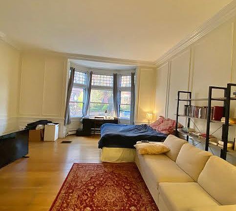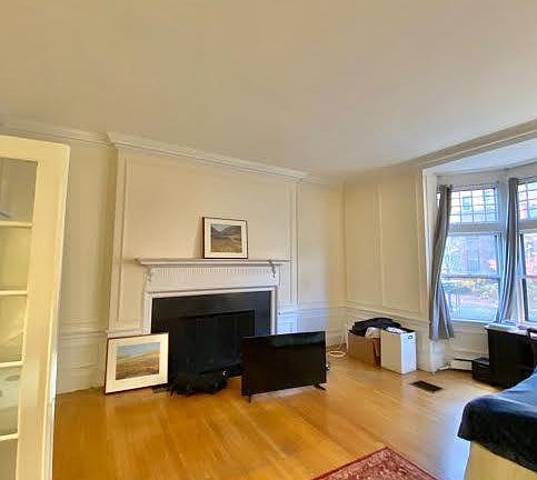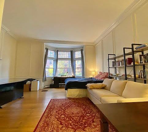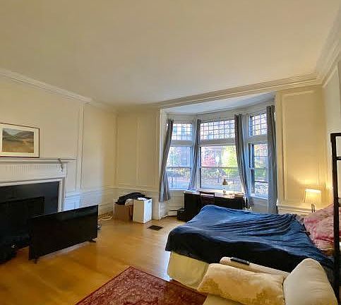 NO BROKER FEE. Spacious grand Marlborough St. front facing Studio. Original glass pocket doors separate kitchen. Huge ornamental fireplace. High ceilings. Bay windows. Hardwood floors throughout. Laundry in building. Direct access parking space(tandem) available for rent. Parking space(tandem) available for $250/mo. Heat & hot/cold water included in the rent. Cats allowed. 1st, last, $200 key deposit. No Broker Fee.