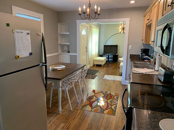 FURNISHED 3 bedroom/1 bath duplex house in trendy Woodbine. Landlord provides internet, utilities, and lawncare. -3 bedroom- 2 down, 1 up with brand new beds and bedding -separate workspace areas -sunny living room with sectional sofa, large TV with Roku and local channels -studio, rec room or office with sectional sofa, TV with Roku and local channels -updated kitchen with built in alcoves and large dining table -stainless appliances, fridge w icemaker, dishwasher, and over range microwave -washer & dryer -hardwood floors -sunny windows -fenced backyard has fire pit and shed workshop w electricity -wraparound deck -driveway parking Well-mannered dogs & cats considered with pet fee. Applicants must show household income 3-4 x rent and complete credit & background check. $2100 per month, 6 month lease is $2000 per month,. 1 year lease is $1900 per month. FURNISHED HOME AVAILABLE FOR SHORT TERM RENTAL Owner pays for internet, electric, gas heat, lawncare, water and trash/recycling No smoking