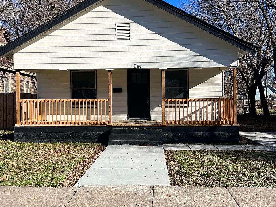 Welcome to this newly remolded home close to downtown Wichita. As you enter the home you find a spacious living room that opens up to a formal dining room, both have new carpet and new paint. Off the dining room is a large kitchen with new LVP flooring, brand-new stainless-steel appliances and tons of cabinet space. This home has two spacious bedrooms with brand new carpet and paint and a completely renovated bathroom. This home also has brand new hot water heater, A/C, fresh exterior paint and new covered front porch. Don't miss out on this home, book your showing today!