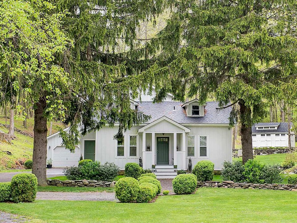 Fern Rock, an idyllic country property, is a magical place to enjoy privacy and tranquility. This sophisticated and stylish retreat is nestled amid 12 acres on a country road in the heart of scenic Millbrook. Sited perfectly surrounded by lush landscaping, this home was created from an original 1940s cottage that was tastefully renovated and expanded in 2016. This was a carefully planned renovation and new construction utilizing only the finest materials that seamlessly fused old and new, creating bright, and airy living spaces with completely modern amenities. As you enter the property, you are greeted by a cozy, open front porch overlooking the front yard. The remodeled space in the cottage includes a welcoming entrance foyer with powder room, a first-floor bedroom suite and stairs to a private loft sitting area and bedroom for guests. The main level features a stunning flowing design with elegant walnut flooring throughout and a beautiful kitchen equipped with a spacious bar, ideal when entertaining large gatherings. In the addition, high ceilings and an abundance of tall sliding glass doors and windows in the living room and dining area provide loads of natural light and take full advantage of picturesque views of the outdoors. The fireplace adds warmth and comfort to this inviting room for very relaxed country living. At the rear of the house, there is a sun-drenched office and exercise/storage room connected to the garage. On the second floor is where you will find an incredible master suite that provides an escape from the rest of the home with more large windows for taking in the outdoor views and a spa-like bathroom. A fantastic walk-in closet and laundry room complete this private oasis. The outside living space is designed to enjoy country life; fabulous yard, gardening and storage barns and walking trails through the woodlands. A fabulous entertaining barn designed for candlelit al fresco dining overlooks the house and garden. This is a superb location, convenient to all the sporting and cultural scenes the Hudson Valley has to offer. 90 minutes north of NYC and a short drive to the Village of Millbrook. 24 hour notice for accompanied showings.