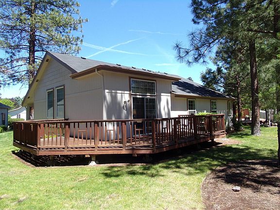 TAKE IT EASY. It's your time to enjoy life! Own your own 3 bedroom, 2 bath Fuqua home with a double garage in The Pines, Sisters 55+ community. Spacious living room with high ceilings and tall windows to let the sunlight flood in. The large kitchen includes a pantry and breakfast bar. All major appliances included. Dual sinks and a soaking tub in the private master bath. Step out back to the generous back deck that borders common land. Gated for added security. Community hall for Owners activities.