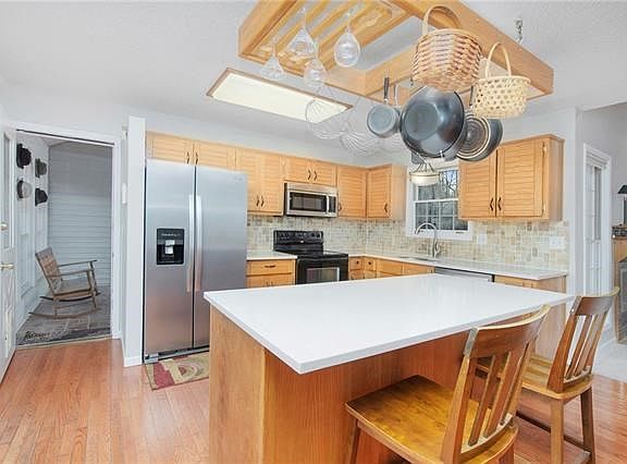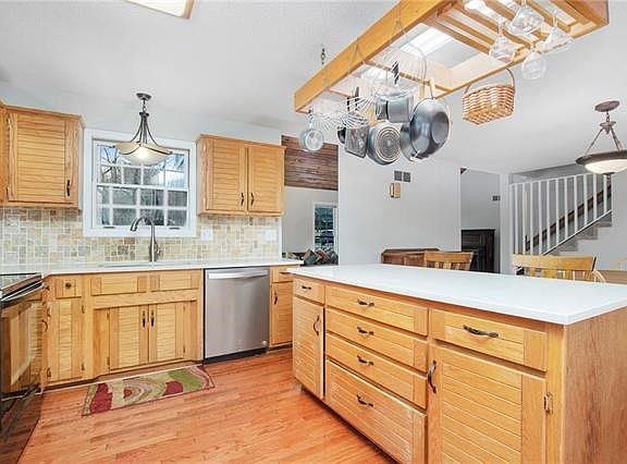 So much NEW in this beautiful home! NEW: carpet & paint (including trim and interior doors) throughout house, AC, furnace, refrigerator, and water heater only a year old! You will enjoy the unique features and feeling of this lovely home. Enter the neighborhood through a tunnel of trees that curves toward this home, which sits on nearly one full wooded acre in a breathtaking setting. You will love outside living/entertaining on the huge recently painted deck that wraps around the back & side of the house, complete with a perfect spot to hang a hammock on the deck, a six-seater hot tub, lower patio off the walk-out basement, walking paths and a small pond with a waterfall feature. The mudroom between the oversized two-car garage and house is so charming with brick floor and large windows. The welcoming kitchen has ample wood cabinets, huge island, & quartz countertops; hardwood floors extend from kitchen through eat-in area with walk-out to deck. Tongue-and-groove vaulted ceilings and fireplace make the family room an awesome place to gather. The main floor master has an en suite with separate shower and jetted tub, walk-in closet and walk-out to deck. A half-bath conveniently opens onto the hot-tub deck and holds a large main floor laundry and additional large storage closet. On upper floor are two spacious bedrooms, another huge closet, & updated full bath. The basement has fourth bedroom, full bathroom, second family room, multiple storage spaces & an additional unfinished area with windows which could be finished as bonus room. 2-room outbuilding, lots of parking. What are you waiting for? 2022-01-14