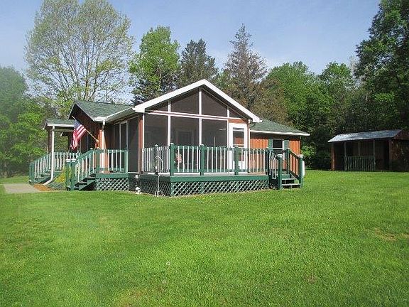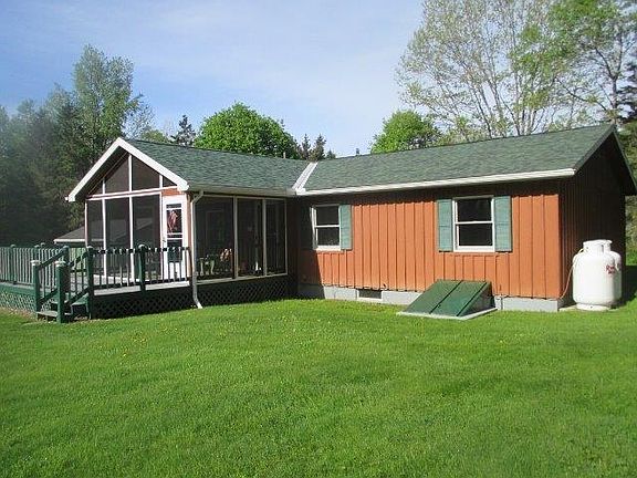Charming 3 bedroom country home on 6 acres has a full dry heated basement for storage or gameroom. Heat is propane or wood. Windows and roof have been updated.House sits back away from the road for privacy.The screened porch and deck are perfect for entertaining and enjoying peace and quiet. Back yard has fenced herb and vegetable garden. An additional 16 acres across the road is also available. Vacant land across the road is also for sale.Listing #121481 has pond and stream.