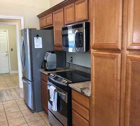 Upgraded like new home with large yard, garage and screen porch. This home features 3 bedrooms and 2 full baths with a lovely bright living room, kitchen open concept. The home is located in Pebble Creek close to shopping, dining, beach and Marsh Walk. Screen porch, walk in closet, washer/dryer and much more. Home can be rented furnished or unfurnished for a 6 month period. Located on the 2nd hole of the golf course.