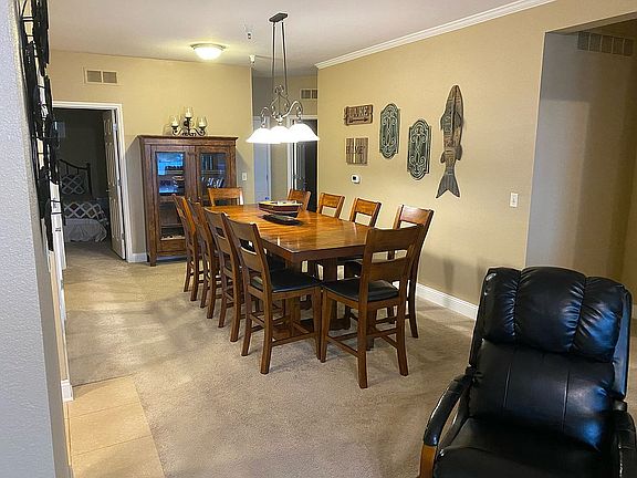 This super clean condo radiates the feeling of lake relaxation as soon as you walk through the door. The open floor plan is ideal for entertaining and is accompanied by an unobstructed view of the main channel. The spacious screened in back deck is fully furnished and is the perfect spot to watch a game, the boat races, or a beautiful sunset through your floor to ceiling view of the lake. The deck includes a door that walks straight to the community dock and is only steps from the community pool. The unit's dock slip is the closest slip to the unit, making access quick and easy. The PWC slip is fully covered by the roof of the dock. Includes an in-unit laundry room with plenty of storage. Amenities include a community pool, a clubhouse, and an overflow parking area for guests. The master suite includes a jetted tub, and all other bedrooms include a bathroom with a tub shower. This condo is located near lake area favorites such as to Captain Rons, The Tavern and Bulldogs.