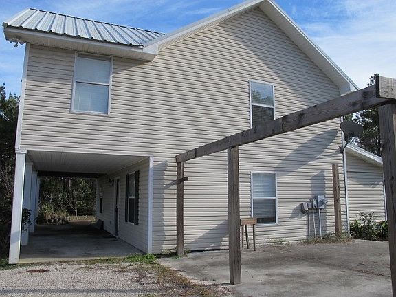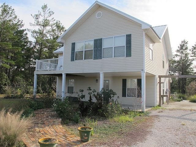 Enjoy great river views from this coastal home that had no flooding from Hurricane Michael. The upstairs has a large kitchen and dining area and living room in additional to the master bedroom and bath. Large deck off living room and master bedroom. Open floor plan. Large walk-in closets in each bedroom. There are two bedrooms downstairs at ground level, each with an en-suite bath. Laundry room is also at ground level. Carrabelle is a charming riverfront town on the Gulf of Mexico in the Florida panhandle. Property sold "as is" only.