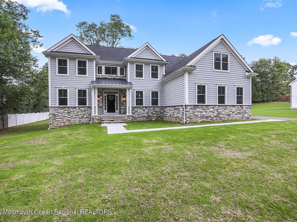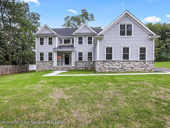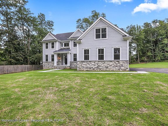 Seize the rare opportunity to own a stunning new construction boasting over 3,400 sq ft of refined living space, accompanied by a full basement and a 3-car side-entry garage, nestled in the desirable Marlboro Township. The well-crafted exterior features a blend of stone and shake. Dble door entry opens to a grand 2-story entrance. Features incl 5 BR and 3.5 Baths, with the 1st level bedroom with a full bath, formal living and dining rooms, open to a spacious 2-story family room with a gas fireplace, seamlessly extending to a gourmet center-island kitchen. The kitchen is adorned with custom 42'' cabinetry, sparkling quartz countertops, and state-of-the-art stainless steel appliances. The 1st level also showcases 9ft ceilings and gleaming hardwood flooring throughout Ascend to the 2nd level to find a master bedroom suite with a sitting room, a spacious walk-in closet, and an elegant master bath featuring twin vanities, a frameless shower, and a free-standing tub. Additional assets include a poured concrete foundation and a 2-zone energy-efficient HVAC system. Suncrest Builders, with decades of establishing quality homes in NJ, truly reinforces the essence of exquisite living within this home.
