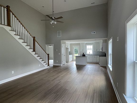 Beautiful new construction home within half mile of interstate 95 and walking distance to downtown Four Oaks! Master suite downstairs, with walk in closet. Half bath downstairs. Two bedrooms upstairs with a full bath and walk in storage. Granite countertops in bathrooms. Open kitchen with granite countertops and white shaker cabinets. Luxury vinyl flooring throughout all living areas. Carpet in bedrooms. Double car garage. Wood shelving in pantry and all closets. Move in ready by August 2023.