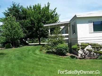 Well-kept MH on nearly 1/2 acre, newer vinyl windows and metal roof, completely re-plumbed within last 2 years. Whitfield pellet stove, covered deck, established veggie garden, 24x24 lined & insulated detached garage/shop with concrete floor & power, storage shed, all appliances inc!
