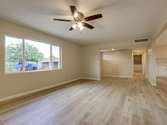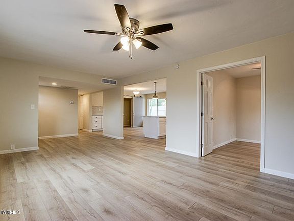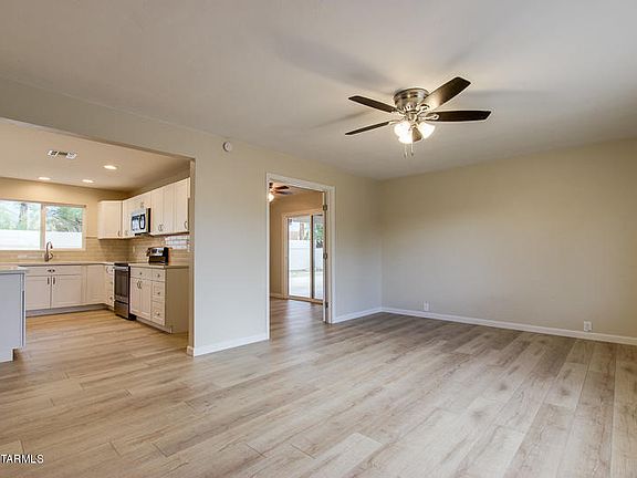 BEAUTIFUL OPEN SPACIOUS BRIGHT MODERN HOME! BRICK HOME ON A CUL-DE-SAC ON THE EASTSIDE OF TUCSON. PRETTY WOOD LAMINATE FLOORING THROUGHOUT, TILE IN BATHROOMS AND CARPET IN BEDROOMS. LIVING ARE IS HUGE WITH PICTURE WINDOW OUT TO THE FRONT. KITCHEN IS SO BRIGHT AND HAPPY - WHITE CABINETS WITH SAND COLORED SURROUND, HUGE ISLAND WITH BREAKFAST BAR & EAT-IN SPACE AS WELL AND STORAGE, TONS OF CABINET SPACE, STAINLESS STEEL APPLIANCES, AND BARN DOOR SLIDING DOOR INTO THE PANTRY. DEN IS OFF OF THE KITCHEN. LOTS OF BARN SLIDING DOORS THROUGHOUT THE INTERIOR OF HOME. BIG COVERED PACK PATIO AND HUGE PAVER AREA WITH FIREPIT FOR ENTERTAINING. OWNER/AGENT. ALL WORK BEING PERFORMED BY LICENSED CONTRACTORS.