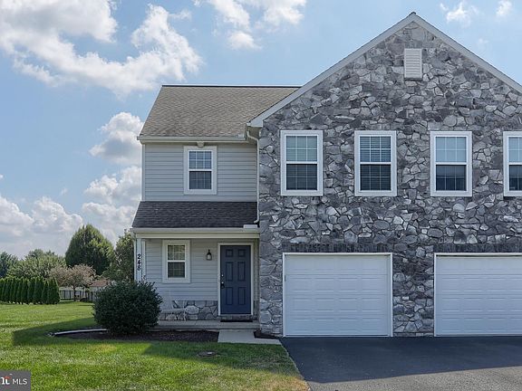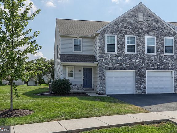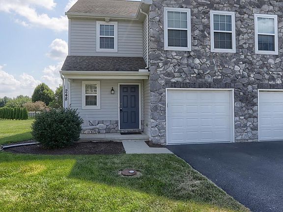 Welcome to 248 South Village Circle, nestled in the desirable Village of Springbrook in Palmyra and located within Palmyra Area School District. This charming home offers carefree living with convenience and comfort at every turn. Featuring 3 bedrooms, 2.5 baths, and an attached 1-car garage, this property backs up to a scenic walking trail—perfect for enjoying peaceful strolls right from your backyard. Step inside to find a welcoming interior with a blend of laminate wood flooring and carpet throughout. The kitchen is equipped with stainless steel appliances, gas range, and plenty of cabinet space, ideal for both casual meals and entertaining. The spacious primary bedroom boasts a walk-in closet and an attached full bath complete with a double sink vanity and easy-care vinyl tile flooring. Ceiling fans provide added comfort, and the full unfinished basement offers endless possibilities—whether you're envisioning a home gym, office, or additional living space. Enjoy low-maintenance living in a beautiful community with easy access to local amenities, shopping, and schools. Don't miss this opportunity to make 248 South Village Circle your new home!