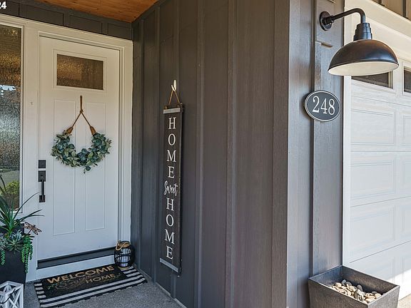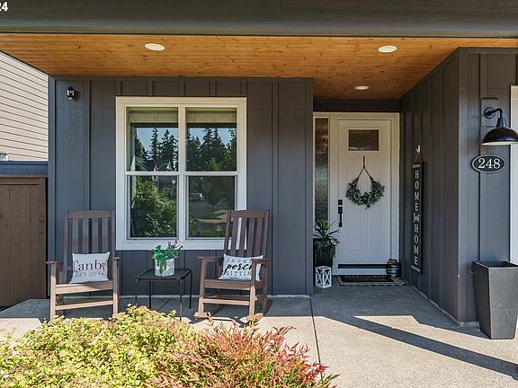 Welcome to this stunning home in Ivy Ridge Estates, where no detail has been overlooked. It features designer finishes, tall ceilings, and numerous upgrades. The home offers four bedrooms, including one on the main level that can be used as an office. The beautiful kitchen and dining room combination boasts an island with seating, stainless steel appliances, upgraded stone countertops, a coffee bar, and elegant light fixtures. Adjacent to the kitchen is a cozy sitting area with a fireplace and custom built-ins, perfect for relaxing or entertaining.Upstairs, you'll find a bonus room with vaulted ceilings and massive windows that fill the home with natural light. The spa-like primary suite offers a huge walk-in closet, a freestanding bathtub, and a walk-in tile shower.Outside, enjoy the covered outdoor entertaining area. The home is located in a wonderful neighborhood with great walkability and is centrally located in Canby, offering easy access to commuting, shopping, restaurants, and more.