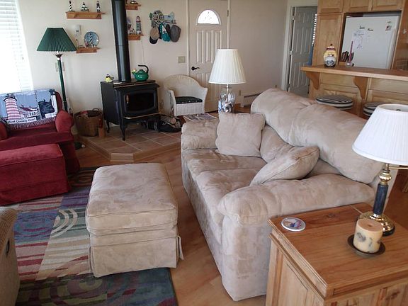 Panoramic view home on SeaView is a turnkey vacation home opportunity. Light and bright with high ceilings in the great room, and decks on both levels, this home is your fabulous coastal getaway. The two bedrooms give you plenty of space for guests; but the master on the main floor promotes privacy, too. Watch the whale migration from your deck or simply enjoy stargazing. This home comes fully furnished and is a short stroll from the tie downs at the airstrip. Pilots, pack your toothbrush and your golf clubs and head to the Cove.