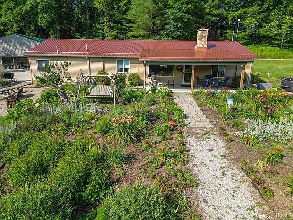 Your Very Own Homesteading Paradise Awaits! The hard work has been done for you on this amazing 5.5 acre property with an established orchard, bearing berry bushes, large vegetable garden, green house and large pond stocked with fish. There is a custom smoke house on the property as well as a root cellar/storm shelter and 30x40 pole building with extra storage on the back and side. The gorgeous perennial garden has vast array of butterfly population. Upon entering the home you will notice the updated kitchen with plenty of storage, and spacious living room with cozy wood burning fireplace that has recently been inspected. For extra living space and there is a natural light filled sun room just off the kitchen. The Primary suite features massive closest a lovely soaking tub and walk-in shower. This property is breathtaking inside and out, come take in the tranquil setting, sit awhile on the covered patio and breath in all the possibilities. Just a short commute to Crane or Bedford.
