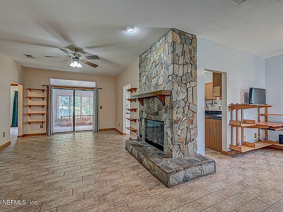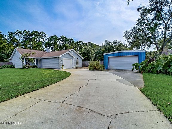 Welcome Home to this 3/2 cul-de-sac gem off Kernan Blvd. With .44 Acres, it's one of the Largest Lots in Villas subdivision & includes a 22x28 Detached Garage and 11x23 Screened Sunroom. This Home Includes Cathedral Ceilings and Stone Fireplace in Living Area, Granite Countertop and Stainless Steel Stove, Microwave & Oven, Wood Tile Floors. Split Floor plan with Master Bedroom & En Suite and Two Roomy Bedrooms and Second Bathroom. Reverse Osmosis and Water Softener. Roof 2017, A/C 2015. Frontyard sprinklers on Well Water. Living Area virtually staged. Home is located minutes from shopping, restaurants, St. Johns Town Center, the beaches and NS Mayport.