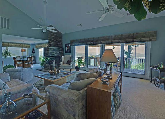 UNDENIABLY ONE OF THE MOST BREATHTAKING LAKE AND MOUNTAIN VIEWS! Perched atop Double Knobs, this immaculate 3BR/3.5BA home offers a 270 degree view of Lake Chatuge and the surrounding mountains. The home sits on 10.88 acres, ensuring that this magnificent view will never be blocked. The main level features a Great Room with vaulted ceilings and a peninsula fireplace, a large kitchen, a dining room, and two bedrooms each with their own private bathrooms; there's also an oversized 2 car garage and a laundry room. The lower level has an oversized Entertainment Room, another bedroom with private bath, a large workshop, an office and storage galore. There are decks on both levels and much more; ask for a Features List.