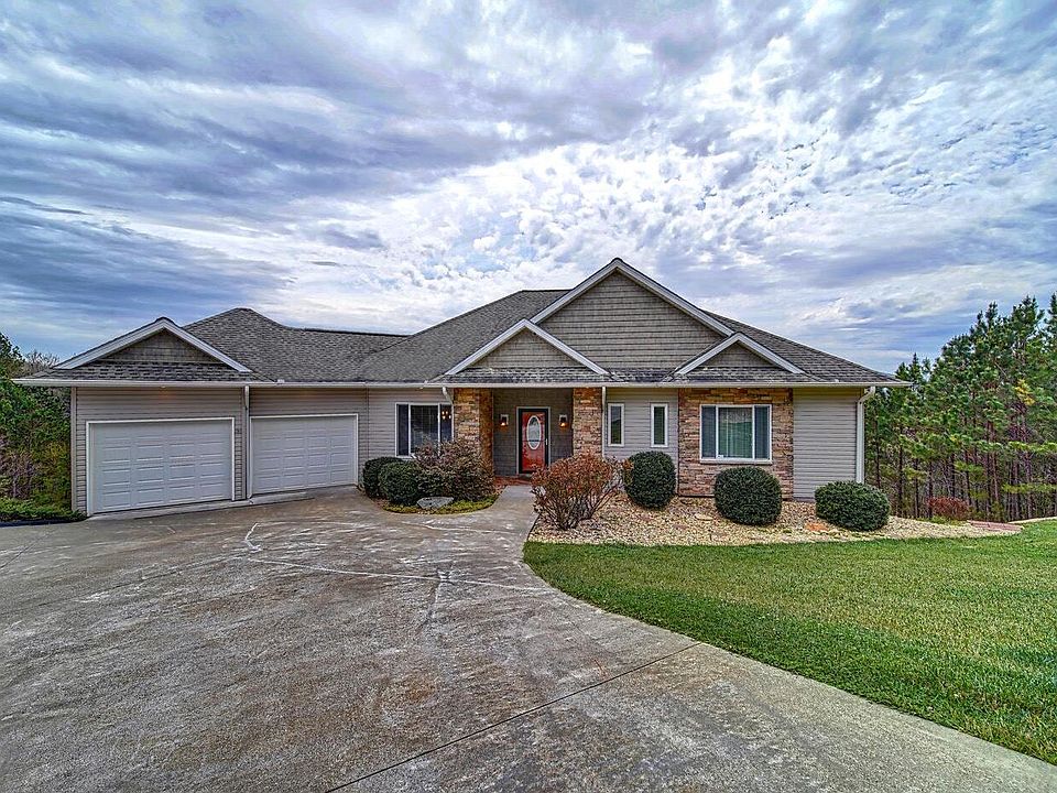Long Range Mountain Views from your home equipped for the cover of Better Homes and Gardens Magazine! Created by Premier Home Builder Gary Densky! This charming 3-bedroom, 3.5-bathroom Craftsman is located in Blairsville's Pinehurst community. The surrounding area, Blairsville, is prized by locals and by home buyers. The home is minutes away from Lake Nottely. Enjoy spectacular Long Range Mountain Views that are visible from every room. Exterior includes a Southern Facing screened back porch. Within, you'll find an impressive entryway, oak hardwoods throughout, both natural light and stylish fixtures, neutral decor, tray ceilings, and two gas fireplaces (living room and terrace level). Roomy, stylish chef's kitchen is gorgeous with natural light, premium appliances, attractive layout with double ovens, and granite counters. The serene master bedroom features a tray ceiling, a walk-in closet and private bath with step-in shower, jetted whirlpool. The other two bedrooms, distributed on the terrace level for privacy, are quiet and ensuite, you will also find a wet bar and a recreation / TV room with a fireplace. Attached two-car garage. The circular driveway is grand. Don't let this be the one that got away.
