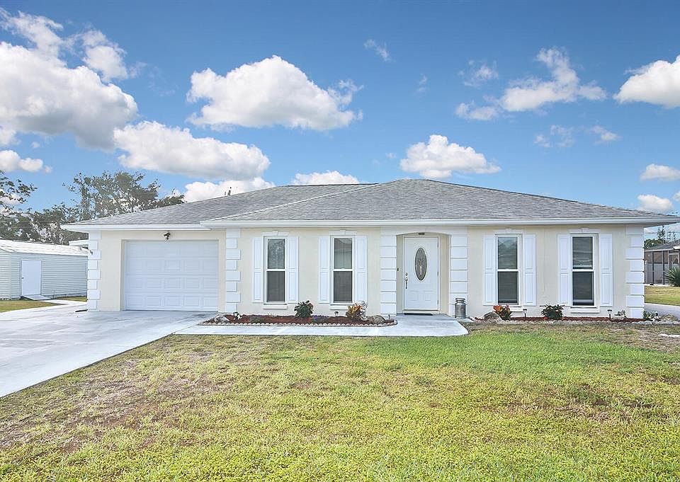 Carport in rear is 15x18 and has its own driveway. Garage has workbench, 15x21. Enclosed rear lanai and covered area on left side of home. Concrete patio in rear is approximately 10x10. The home has been well maintained and outside freshly painted with new shutters added. New A/C in 2020, septic pumped in 2019, new washer 2019, new insulation in attic R38 2018, new garage door 2022. Close to food shopping (Aldi) and other stores like Marshalls, several restaurants like Bonefish and other eateries. Only a few minutes to the downtown area of Venice and its beautiful beaches. Free parking in downtown and beaches! Downtown offers theatre, great library, art center, weekly fresh market shopping, parks and many small shops to both eat and find treasured gifts for yourself.