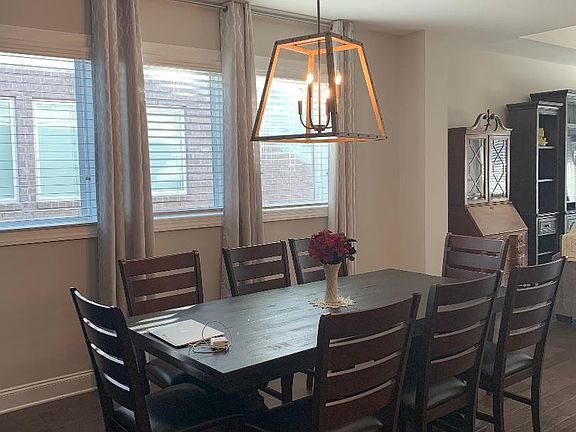 Four bedroom villa with front porch living in beautiful Durham Farms. Mostly hardwood downstairs with 3 bedrooms in main level. Flex room and additional bedroom up with storage room. Covered rear porch also. Beautiful kitchen with farmhouse sink and new microwave. 6 ceiling fans. 3 full baths. Storage in garage. All brick.