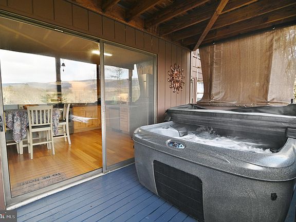 "Wolf Lodge" - Enjoy a cup of coffee on your deck with views of Great North Mountain. You will love the layout of this super clean, renovated condo within walking distance to Bryce Resort. Completely renovated with newer appliances, new subfloor/bamboo flooring throughout (tile floor in bathrooms), two full-size bathrooms, new heat pump in 2022, two forty-gallon inline hot water heaters, all double-hung tilt-in windows throughout, washer/dryer in insulated storage area with heating inside, and new circuit breaker box in 2022. You will love soaking in the 4-person (220v) hot tub on the reinforced deck. Sit by the fire near your wood-burning fireplace (HOA supplies firewood). One of the perks of this property is an additional back entrance/exit from the deck. So, there are two entrances; you pick! There is also a space in front for chairs and a grill that is ours to enjoy! This property is just a 2-minute drive to Bryce Resort, making it an ideal mountain getaway. The resort area offers the following: small airport, library, dog park, indoor pool, swimming pool, inground outdoor swimming pool, lazy river, pickleball, tennis, playground, golf, mini golf, lake, mountain biking, skiing, snowboarding, ice-skating rink, and restaurants, to name a few. 1.5 hours from NoVA. There is a farmers' market on Wednesdays during the summer. Call now for an appointment.