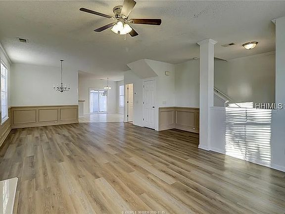 This spacious single family home in a wonderful community offers over 1,900 sq/ft, a full 2 car garage, fenced yard and a private wooded lot. Enjoy a generous size living room, newer LVP flooring, cozy fireplace, ample dining w/wainscotting & crown molding. Eat-in kitchen w/stainless steel appliances & abundant cabinet space. Brand new washer and dryer. NEW carpet throughout second floor. Owner's suite equipped w/tray ceilings, en suite bath, 2-sink vanity, & separate tub & shower. Conveniently located in Beaufort County, University Park provides quick access to community pool, playground, nearby shopping & University of South Carolina Bluffton campus. Submit an application via Zillow and call/text to make an appointment for a tour of the property. One year minimum lease. Move-in date negotiable. Must pass credit and criminal background check. One month rent as security deposit. Pets allowed as per HOA rules with separate pet deposits.