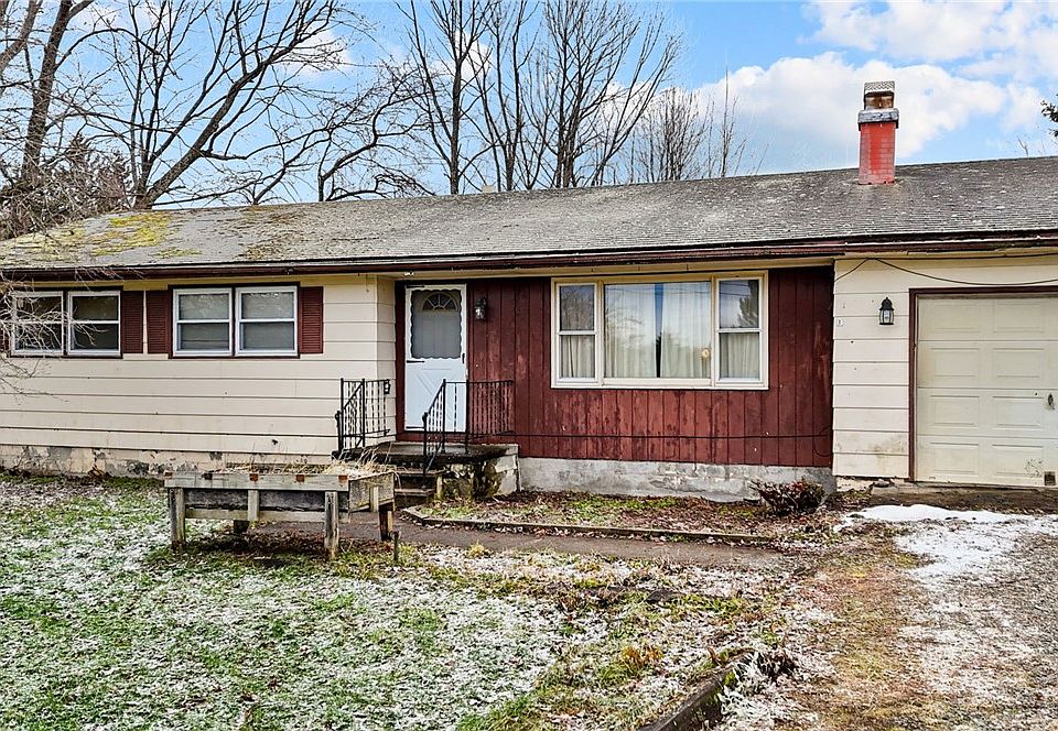 Set on over 7 acres of level, open grassland, this inviting farmette-style property offers space, versatility, and long-term potential—all within the Ithaca City School District. The ranch home is currently configured as a 2-bedroom, 1-bath residence, with the flexibility to be re-converted to a 3-bedroom in addition to finishing the full basement to add more usable square footage. Inside, you’ll find hardwood flooring and a home built on a solid block foundation, complemented by key mechanical updates-important improvements that add value- including a furnace installed just one year ago, a hot water heater replaced three years ago, and windows approximately ten years old. An attached one-car garage has a stove which makes it a perfect location for a workshop or hobby space in addition to parking or storage. Outdoors, the property truly stands out. The expansive, flat acreage offers numerous possibilities—from personal enjoyment to future investment strategies. A pond adds appeal and is accommodating to animals, while multiple outbuildings enhance functionality, including a 10-year-old shed and a large barn with a metal roof, gravel floor, and electric available-well suited for equipment storage, rental use, livestock or entrepreneurial ventures. Please accomplish due diligence with what the Town allows. This property delivers a rare combination of accessibility, usability, and rural charm—all just minutes from Ithaca.