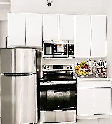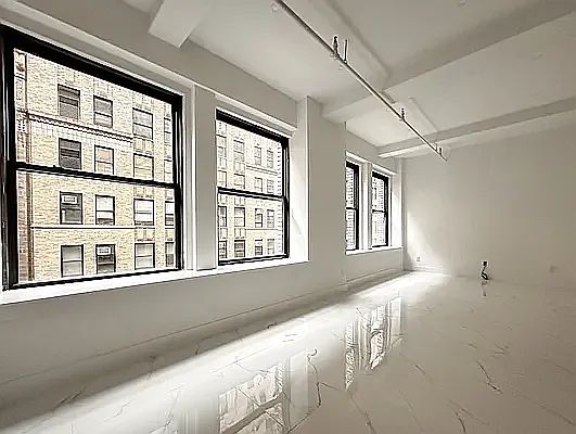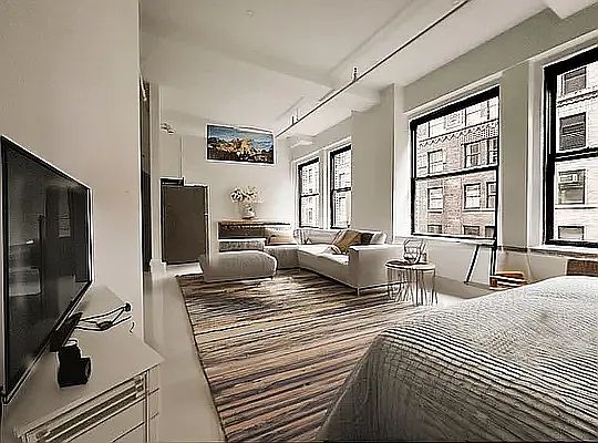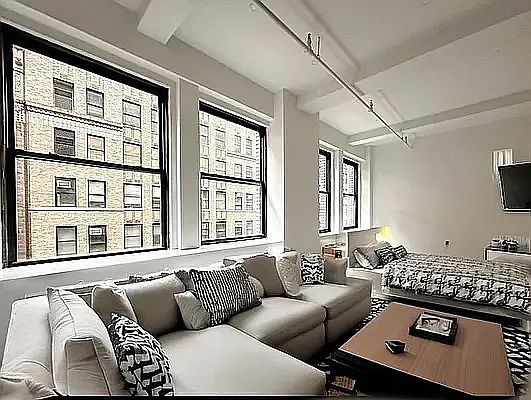 Welcome to your industrial-style studio apartment in the vibrant Garment District of New York City. This unique space embodies loft living with its high ceilings and large windows that fill the apartment with natural light. The modern kitchen features stainless steel appliances complemented by the new marble floors throughout. The luxurious marble-tiled bathroom adds a touch of elegance to this urban retreat.