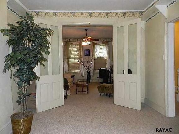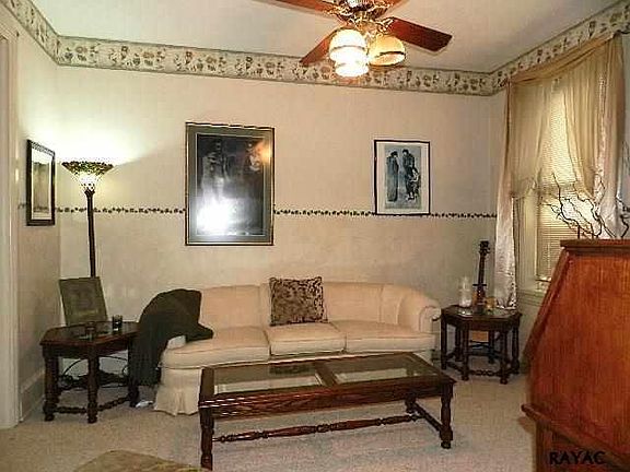 This well maintained brick 2.5 story colonial is located in the Historic District of downtown York within walking distance to the Farmers Market, Strand Capital, YMCA, resturants, nightlife, the stadium, entertainment and the Court House. Entering the home you will be greeted by the foyer with vinyl flooring followed by the living room with wall to wall carpet and a ceiling fan with light. Next is the dining room with wall to wall carpet, a ceiling light and built-in shelving. There is a full bathroom on the main level. The kitchen features vinyl flooring, a ceiling fan with light, recessed lights, a gas range/oven, dishwasher, refrigerator, washer, dryer, hood fan, island and door to the back yard. On the second floor you will find three bedrooms, a storage room, a full bathroom with a single vanity and claw foot tub. The storage room has wall to wall carpet, a ceiling light and door to a balcony. This could be a possible fifth bedroom. The first bedroom has wall to wall carpet, a ceiling light and a closet. The second and third bedrooms each have wall to wall carpet, a ceiling fan with light and a closet. Ascending to the third floor you will find a large bedroom with wood flooring, track lighting and cathedral ceiling. The first and second floor has CAC. Descending to the full concrete basement you will find the utilities and an outside entrance. Some additional features include storm windows, storm doors, some replacement windows and off street parking for two cars. See today!