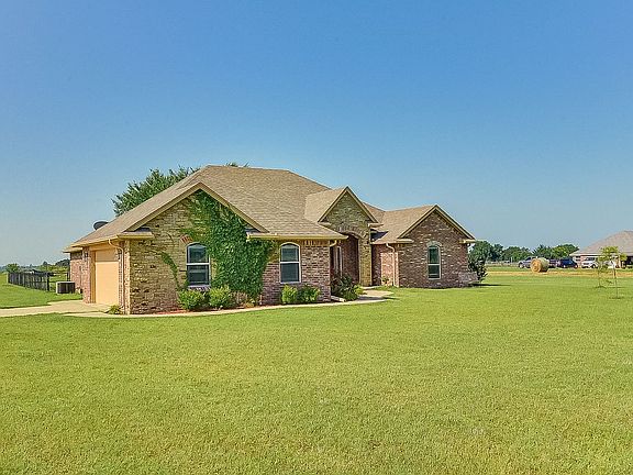 Exquisite (2011)one owner, custom-built home on 1.5 acres. 3 bedroom with office and 2 full baths. A Kitchen and cook will love has granite countertops, double oven, breakfast bar and plenty of cabinet space. Beautiful Master with whirlpool tub, custom tiled showers and gigantic master closet with built ins and a window for natural lighting. Beautiful woodwork throughout the house, crown molding,with additional built-ins in the master closet, hall bath, and hallways create lots of storage space. Open floor plan and large rooms. Dark wood floors surround the living room and down the hallways. Storm Shelter just off the back covered patio. Gutters surrounding the home. Home located in the sought-after Washington School District. Minutes from Norman. This home has it all so call today to schedule a showing!!