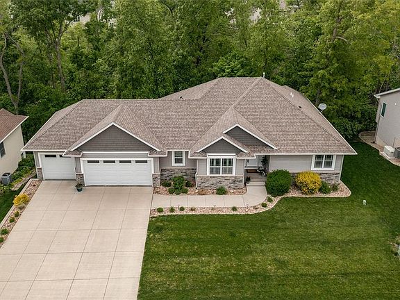 Welcome home to this delightful 4 bedroom, 3 bath walkout ranch with many upgraded amenities. The open vaulted great room features wood flooring, fireplace with stone surround, built-ins and terrific window views to wooded park-like setting. The great room flows into the kitchen with large breakfast island with sink and some glass front cabinets, tile backsplash, hood fan, stainless steel appliances with gas stove, toe-kick central vac and a delightful walk-in pantry. The dining area features an atrium door to the maintenance free deck and wooded views. Enter through the double French doors to the spacious primary bedroom that opens up to the 4-season/sitting/office room that shares the two-sided fireplace with great room. The primary suite also boasts a luxury bath with custom tile shower, tile flooring, double sink vanity and jetted tub. Nice size second bedroom, main bath and spacious laundry room completes the main level. Family and friends will enjoy the lower level walkout family room with wet bar with granite countertop, slider to brick patio, 2 bedrooms, full bath & wonderful storage. Easy access to bike/walking trail and downtown Cedar Rapids.