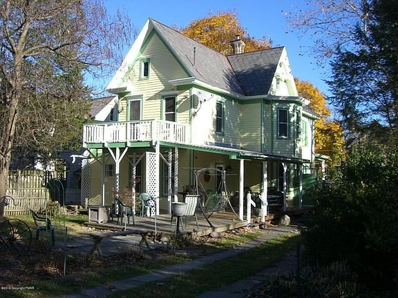 Victorian-style house for sale in East Stroudsburg. The 2,104 square foot building is currently used as a single family residence with 4 bedrooms and 2 bathrooms. C-1 zoning allows for additional uses including multi-family dwelling, office, or bed and breakfast. Off-street parking with large yard and 2-car garage.
