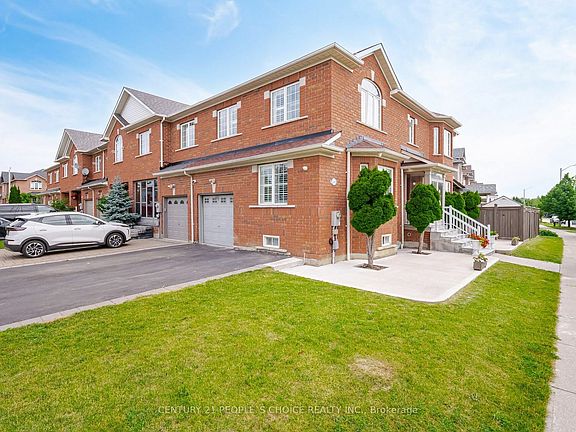 Freehold Corner 2 Storey Solid Brick Townhome, Appx 1,910 Sq Ft Above Ground, Appx 900 Sq Ft Finished Basement, 3 Large Bedrooms + 3.5 Bathrooms, 2 Full Bathrooms on 2nd Level, Finished Basement (separate entry through garage), Easily Park 5 Vehicles, 1 Garage, 4 Driveway, No Sidewalk on Driveway area, Hardwood Floors Throughout Home, Poured Concrete on Front Porch Area & Backyard, Steps Interlocked, Double Door Entry with Glass Enclosure, Pot lights Throughout Home, Oak Staircase with Iron Wrought Pickets, Stunning Upgraded Kitchen with Custom Backsplash Double Undermount Sink, Island & Pantry, Main Level Features Living/Dining Area, Family Rm with Gas Fireplace and Eat in Kitchen which overlooks the Backyard All finished with Beautiful Large Tiles and Hardwood Floors, 2nd Floor Features Hardwood Floors, 3 Generous Sized Rooms, 2 Stunning Full Baths with Upgraded Vanities & Stand up showers, Primary Bedroom Features 3 Pc En suite Bath & Large Walk in Closet, Basement is finished with Laminate Floors and Features Kitchen with Island and Drop Down Pendant Lighting, Rec Area and Dining Area, Spacious backyard to Garden, BBQ with friends and family, or Enjoy a cup of coffee under the Patio Cover during the Summer months! Beautiful Upgraded Townhome! A Must View!