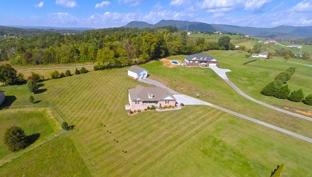 Upscale Country Living with Mountain Views. Beautiful brick basement rancher with a chef's kitchen, open floor plan & 3 large bedrooms on main level. Downstairs features a HUGE Movie Room & Rec Rm, Unfin storage, Safe Room, & workshop with garage door. Bring the boat, ATV's, and all your toys... plenty of space for them too! Attached 2 car garage main level, detached tall 2-car garage with RV parking (including full hookups), electricity, bathroom, workshop, additional storage. Enjoy the mountain views on the front porch & oversized rear deck, & cook for friends in your outdoor kitchen. With 1.77 acres you have plenty of space to make your own mountain oasis in Eastern TN. Don't miss out on this beauty. Car Lift in Garage to be sold separately.