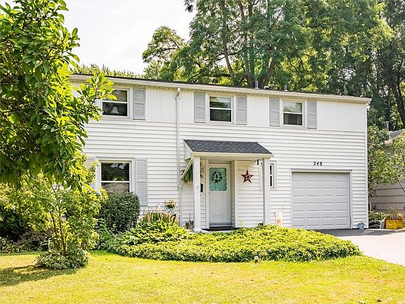 PRIDE OF OWNERSHIP! First time being offered in 50 years, check out this gorgeous colonial in the Town of Greece! 4 bedrooms/1.5 bathrooms, 1,351 sq, ft., 0.17 acre lot, 1 car attached garage (garage door replaced 2024), vinyl siding, shed and fully fenced backyard. Spacious patio overlooking the private backyard that backs up to Round Pond Creek, beautiful hardwood floors throughout, and full basement. Great location close to all amenities and places to go! 5 minutes to the Mall at Greece Ridge, I-390, and Wegmans, 13 minutes to the Rochester International Airport, 15 minutes to Ontario Beach Park and Downtown Rochester! Don't miss out on this gorgeous home! NO DELAYED NEGOTIATIONS, FIRST COME FIRST SERVE BASIS