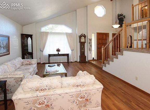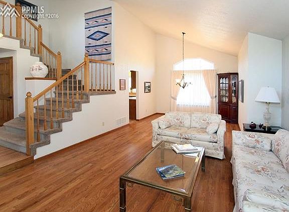 Stunning Views Of Blodgett Peak On Cul-de-sac, Tastefully Updated, And Located Very Close To Award-Winning Woodmen Roberts Elementary School, this Peregrine Property Shows True Pride Of Ownership. Built By Vantage Homes By and Featuring Plenty Of Room For All With 6 Spacious bedrooms, 4 baths And Ample Living Space. Gleaming Hardwood Welcomes You And Extends Into The Formal Living & Dining Rooms, Both Of Which Are Flooded With Natural Light And Offer Plenty Of Room For Hosting Gatherings Of Any Size. The Kitchen Boasts Stainless Steel Appliances, Sizeable Pantry, And Plenty Of Storage And Prep Space With Casual Dining Area Surrounded By Windows Framing The Mountain View. The Adjoining Family Room Is Cozy And Inviting, And Showcases A Full Wall Brick Fireplace And Walk-Out To Back Deck And Yard. A Powder Room And Laundry Room With Washer, Dryer & Utility Sink Completes The Main Level. The Upper Level Boasts A Spacious Master Suite With Private Sitting Area And Luxurious Updated 5pc Master Bathroom To Include Lg Walk-in Shower with Multiple Heads, Spa-Like Over-sized Soaking Tub, Heated Tile Flooring & Walk-in Closet. 2 Additional Bedrooms And Full Bath With Skylight Complete The Main Level. The Lower Level Offers Additional Entertaining & Living Space To Include A Large Rec Room Or Office/Craft/Studio Room, HUGE Bedroom And 3/4 Bathroom. The Oversized 2 Car Garage Features A Locker, Workbench, Peg Board & Storage Space! Other Features Of This Lovely Home Include All Newer Vinyl Windows, Newer Carpet, Newer Lighting & Hardware, Colonial Maple Doors, Newly Stained Deck, Central A/C, Impact-Resistant Roof & More! Located On A Cul-de-sac In Highly Desirable Northwest Peregrine Neighborhood, Close To Multiple Trails, Parks, Esteemed D-20 Schools and More, This Home Is A Must-See!