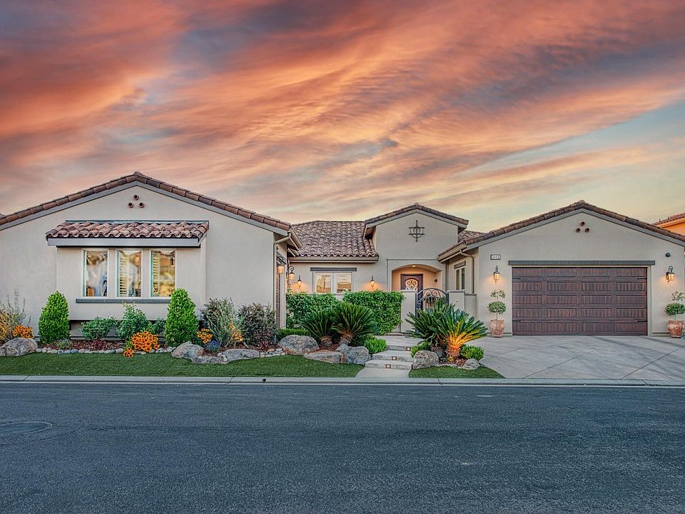 Gorgeous single level Gary McDonald home at Copper Hills gated community is absolutely turnkey! This Santa Barbara style home features an authentic Spanish barrel tile roof, a smooth stucco finish and a gated front courtyard. There are loads of upgrades and an owned 9.7 KW solar system installed in 2021 essentially offsets all electrical consumption. The open floor plan flows seamlessly with a gourmet chef kitchen that overlooks the great room. The large island and countertop have both been extended in size. All appliances upgraded; there is a built-in fridge, wine fridge, gas cooktop, two ovens, farmhouse sink, instant hot, purified water, Quartzite counters and backsplash. The home exudes modern elegance with wood floors throughout and colors in soft greys and neutrals. Classic and modern lighting, LED cans, a NUMA soft water system, a smart home system with security and cameras. The three car garages have many New Age built in cabinets and workbench, a 50-amp EV charging station and finished floors. Upwards of $200,000 spent in upgrades and improvements! Once outside you will appreciate the beautiful landscaping and low maintenance synthetic lawn front and back along with a built-in pool and spa. This is a lovely community with the very best rated schools in CUSD and a close golf cart ride to Copper River Country Club.