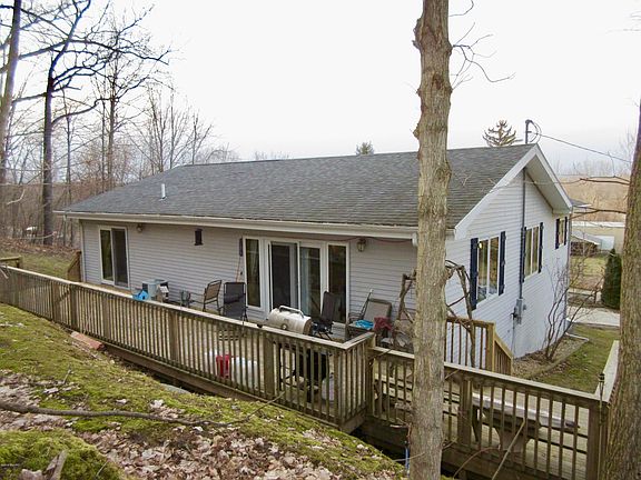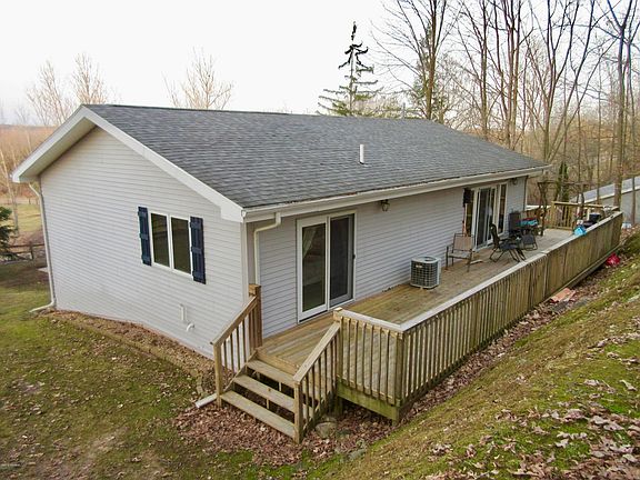 Country Bi-Level on 1 acre just east of Ionia.2 bedrooms,(plus an unfinished area of the lower level has a daylight window for a future bedroom & a finished room in the lower level without an egress window, being used as a bedroom).Home shows great w/a very large living room w/a vaulted ceiling & slider to a large deck, galley kitchen w/lots of cabinets & bar open to the eating area.Full bath w/2 sinks,master bedroom w/large walk in closet & slider to the deck,2nd bedroom also has a walk in closet. Interior 6 panel wood doors. Home is vinyl sided w/aluminum soffits. 2 stall garage is part of the lower level. This home was built in 1993 as a CES Home (Controlled Environment Structures),made w/insulated panels for high efficiency. Close to the Fred Meijer River Valley Rail Trail.