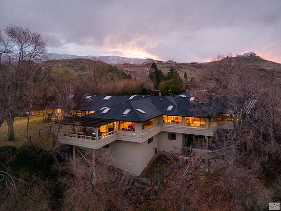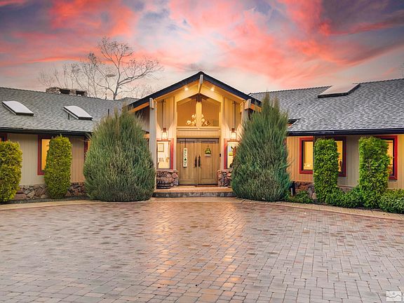 VIEWS! Exceptional panoramic views of the city lights, mountains, and valley from this dramatic hillside home. Sitting on a select private parcel of land, vineyard anyone? This fabulous ranch style home is great for entertaining, or quiet country living, with skylights throughout. The outstanding heated indoor diving pool features its own bathroom with sliding glass doors out to the east facing valley views. Boasting 2 ensuite bedrooms, guest rooms, plus offices, a workout room, bonus/rec room, and sauna. HAVE YOU ever wanted your own vineyard? Lower acreage is perfect for an Orchard or Grapes. The kitchen boasts high ceilings and views and lots of light. The owners suite has its own private deck with a hot tub, huge walk-in closet, and expansive bath with large walk-in shower. This is a great location for those who enjoy the peace of the country with the ease to access all that Reno has to offer. Take advantage of lots of elbow room and seeing wildlife right out your window. Lake Tahoe and the Sierras or upscale shopping at Summit Sierra all close by. Note: Chandelier in entryway, chandelier in dining room, and chandelier in sitting room do not stay and will not be replaced.