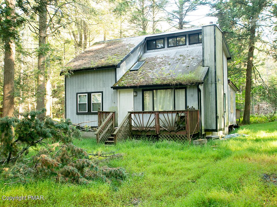 Fixer-upper on 2+ acres in the lovely Wagner Forest community in Pocono Lake. There's a bedroom on the first floor and a loft overlooking the living room. Porch roof leak damaged the porch insulation. Well and septic on site.