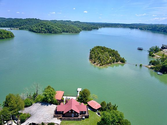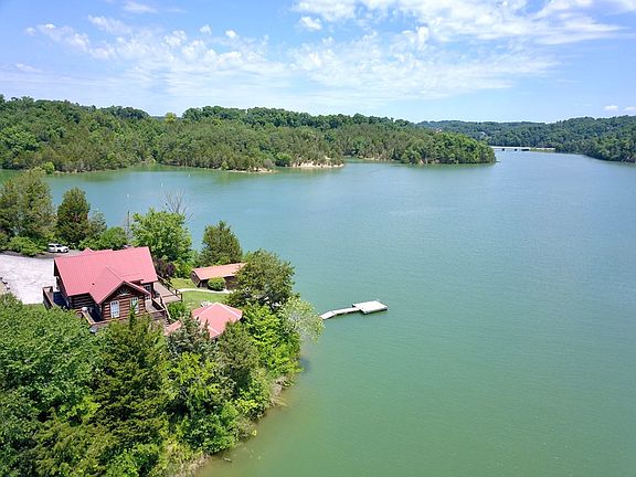 *Buyer's Financing Fell Through* It's not every day that a place like this comes on the market. This is an income producing Airbnb/VRBO rental cabin. A true white pine log home sitting on over a half an acre of your very own peninsula, with Douglas Lake on three sides, it provides a waterfront experience like no other. This place was built as an outdoor entertainers wonderland. The main porch wraps completely around the cabin, there is a lakeside fire pit area, a lookout deck at the waters edge, a dock with a 50' gangplank to keep you in the water longer and one of the best outdoor pavilion/gazebo areas equipped with a full kitchen. As soon as you walk in, the views of the water and the mountains fill the whole space as you can see them from nearly every inch of the home. The home was originally setup on a one bedroom septic system but there are two full bedrooms on the main level, a loft area upstairs being used as a third bedroom and a basement that combines space for two more beds, a second living area and a game room. There is a full bath on the main with a walk-in shower and a second full bath downstairs. The fence separates the entire parcel from everything else giving you the glorious feeling of privacy in your own gated oasis. All of the appliances are less then 5 yrs old and the heating and air unit was replaced in 2018. There is a water filtration system that was installed in 2018 and it is serviced yearly by Aquaclear. There is a lifetime warranty with Wildlife Excursions on the roof system that prevents wildlife from entering and the pest control company is on a quarterly plan. Surprisingly there is a large flat area of grass on the side of the home and the other side has enough concrete to park at least ten cars or more. Lastly, there is also a very unique boat launching setup with a railing system that dives deep into the waters but this system does need some repair as it hasn't been used in quite some time. Drone photography was used in this listing.