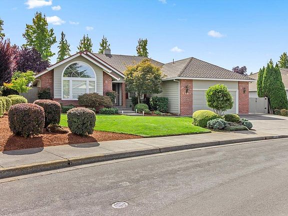 Welcome to comfort in the desirable Brookdale Meadows neighborhood in East Medford. Beautifully landscaped front yard and statement brick accents greet you as you enter into this 2341 sq ft home. Meticulously maintained 4 bedroom, 2 bathroom home provides a perfect balance of open concept living and a dedicated formal living room with vaulted ceilings, large windows and formal dining area. The gourmet kitchen opens up to a cozy eating area and sunken family room with gas fireplace. Home boasts hardwood flooring, luxurious carpet and vinyl throughout. Primary bedroom has en-suite bathroom with jetted tub and walk in closet. Fourth bedroom has built-ins perfect for an office or craft room. Enjoy the serenity the south facing back patio offers as it opens up to a large field with expansive views where deer, turkeys and other wildlife can be seen. Turnkey home near shopping, highly rated schools, wineries, outdoor activities and a short golf cart ride to the Country Club.