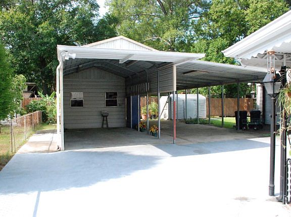 Well maintained brick home featuring 3 bedrooms, 2.5 bathrooms. One car attached carport along w/huge addtl. carport PLUS RV carport in back. Electric gate to access rear parking. No maintenance metal roof, a total of three workshops (all carports/workshops fully wired), tons of storage space, & room to garden in the backyard or greenhouse. Nicely landscaped yard w/full sprinkler system. Termite bond and an alarm system. Stepless handicap tub/shower. A handyman or mechanics dream home!!
