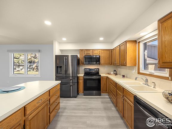 Welcome to your new home, perfectly situated on a spacious corner lot in a desirable 55+ community in northeast Loveland. This beautiful property offers the convenience of low-maintenance living, with the HOA taking care of snow removal, lawn care, and exterior maintenance. Accessibility is a breeze with additional stairs added in the garage and at the front door, ensuring easy entry for you and your guests. Inside, enjoy the comfort of one-level living with an open floor plan that features updated flooring, lighting, windows and bathrooms. The kitchen is a chef's delight, boasting newer appliances, ample cabinet storage, and a generous peninsula ideal for meal prep or casual dining. The adjacent dining area flows seamlessly into a spacious living room, perfect for entertaining or relaxing. Down the hall, you'll find an updated guest bathroom and a cozy guest bedroom. The oversized primary suite is a true retreat, complete with an updated en-suite bathroom and a walk-in closet with plenty of shelving. Additional highlights include a utility area with a large storage closet and a laundry area with extra cabinetry. Step outside through the rear sliding door to a massive covered porch, an ideal spot to stay cool in the summer. The fenced area is perfect for keeping your furry friends close by. Conveniently located near McKee Medical Center and various shopping and dining options, this home offers both comfort and convenience. Don't miss the opportunity to make 2480 N Boise Avenue your new address!
