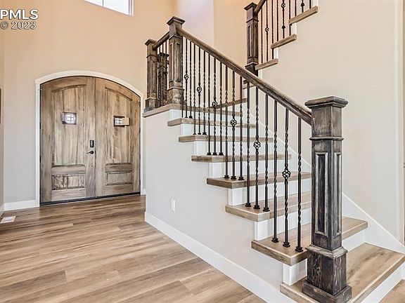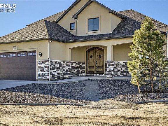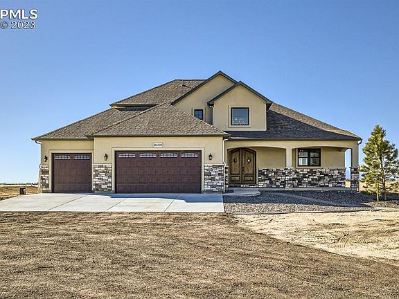 A Timeless Masterpiece Unveiled! Step into the allure of this Spanish-inspired farmhouse, a residence that transcends time with its enchanting design. The grand entrance beckons through 6' wide by 8' tall solid mahogany double doors, leading to a 19' foyer adorned with a captivating chandelier. The great-room, kitchen, and dining area, distinguished by 11' high walls, encircle a grand stone fireplace, and panoramic mountain views are framed by three towering 9' windows. The kitchen, a spacious haven designed for hospitality, boasts a double oven, a 36” six-burner cooktop, plus a custom-made vent. Brazilian granite imported for its richness and durability, elevates the room's warmth. This residence showcases imported Spanish accent tiles, imparting a level of sophistication rarely found in contemporary homes. The basement, featuring 9’ ceilings, offers plumbing for a future wet bar, along with a 10’x15’ vault with 9” of steel-reinforced concrete, ideal for safeguarding valuables or housing a wine cellar. Beyond its aesthetic appeal, this home surpasses Energy Star Standards with a remarkable HERS rating of 52. Constructed with 2x6 walls for enhanced insulation, the house features a hyper-efficient heat pump for climate control, and even the water heater has been upgraded to a heat pump. The garage is prewired for an electric car charger or battery backup power. Nestled on 39 acres of picturesque grasslands, this immaculate abode hosts an irrigated orchard of cherry, apple, peach, and plum trees. The property exudes charm with its old historic silo, barn, and dairy house. Newly installed RAMM horse fencing delineates two expansive corrals, each with shelter access. Located just east of Colorado Springs, the property is less than 5 minutes from an upcoming shopping center and easy commute to Shriver and Peterson Air Force bases. The silo, barn and dairy house existed when the builder purchase the land and hence sold in “as-is, where-is” conditions.