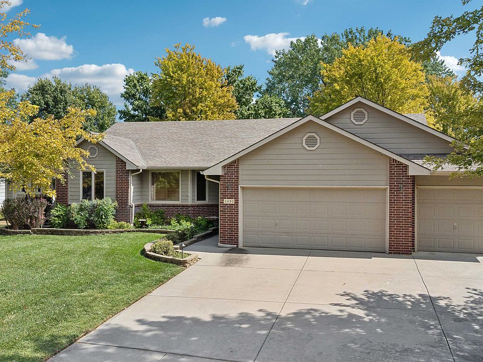 Super split bedroom ranch with 3 car garage in Maize Schools! The home has a very spacious feel to it with its high vaulted ceilings, plant shelves and great room sizes. The entryway with its vaulted ceiling opens up into a large living room - formal dining room combination with large windows and patio doors. The large kitchen boasts an island, pantry, base cabinets with roller trays and pass-through over the kitchen sink to the living areas plus a super bay window breakfast nook with plantation shutters. The large master bedroom size is enhanced by a high vaulted ceiling with a lighted plant shelf and triple windows. The master bath is spacious with a 6ft double vanity, tub/shower, window, tile floor and a large walk-in closet with a sweater rack. Split on the other side of the home are two nice sized bedrooms and a totally remodeled bath with a new tub and tile shower, new vanity, upgraded toilet and tile floor. The basement is a fantastic place to entertain with a huge family room set off by a gas fireplace with a tile and wood face, a patio door flanked by two 5ft x 5ft windows, track lighting and all the hookups for a projection TV to the 135 inch screen that drops out of the ceiling. There is an upgraded basement bathroom with a new granite top vanity, 5ft tile shower with shelving and a rain head. Also in the basement is a large bedroom with a closet including a sweater rack and a daylight window. Additionally, there is an unfinished bedroom with a daylight window. The backyard is very private and boasts a huge patio plus a stone patio with a fantastic stone firepit. A sprinkler and well keep the yard green and to keep the lawn equipment out of the garage there is a custom built storage building or playhouse that is the envy of the neighborhood. Don’t miss this great home!