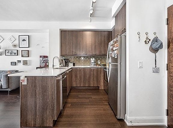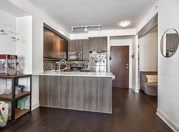One Bedroom+ Den Suite In Joshua Creek. Approx. 705 S.F. Features Engineered Wood Floors, Modern Kitchen With Quartz Counters, Stainless Steel Appliances, Private Open Balcony, Underground Parking And Locker. The Building Features Indoor Pool, Hot Tub, Fitness Room, Party Room, Dining Room, Theatre, Card And Billiards Lounge, Concierge. Tenant Pays Hydro.Available For April 1st Occupancy. Minimum 1 Year Lease.
