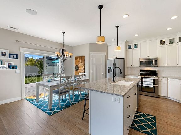 Come see this gorgeous 2013 Parade of Homes entry with upgrades throughout. Grand Master suite with large luxurious bedroom, relaxing soaker tub, and spacious walk-in-closet. Open concept kitchen, dining, living rooms boast 9' ceilings, a 7 channel surround sound ceiling mounted system, and windows galore. Enjoy mature trees, fruit trees, extended back patio, and a fully-fenced backyard on this quiet corner lot. Walk to schools and parks. Relish the stunning sunsets from the wraparound porch.